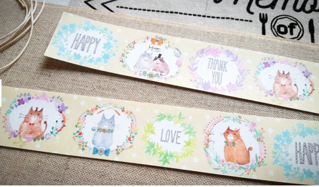 Hoppy Life Washi Masking Tape Roll Yellow Cat Watercolor