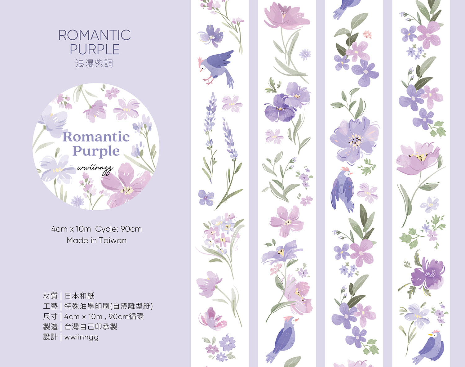 [Samples] wwiinngg Romantic Purple Washi Tape